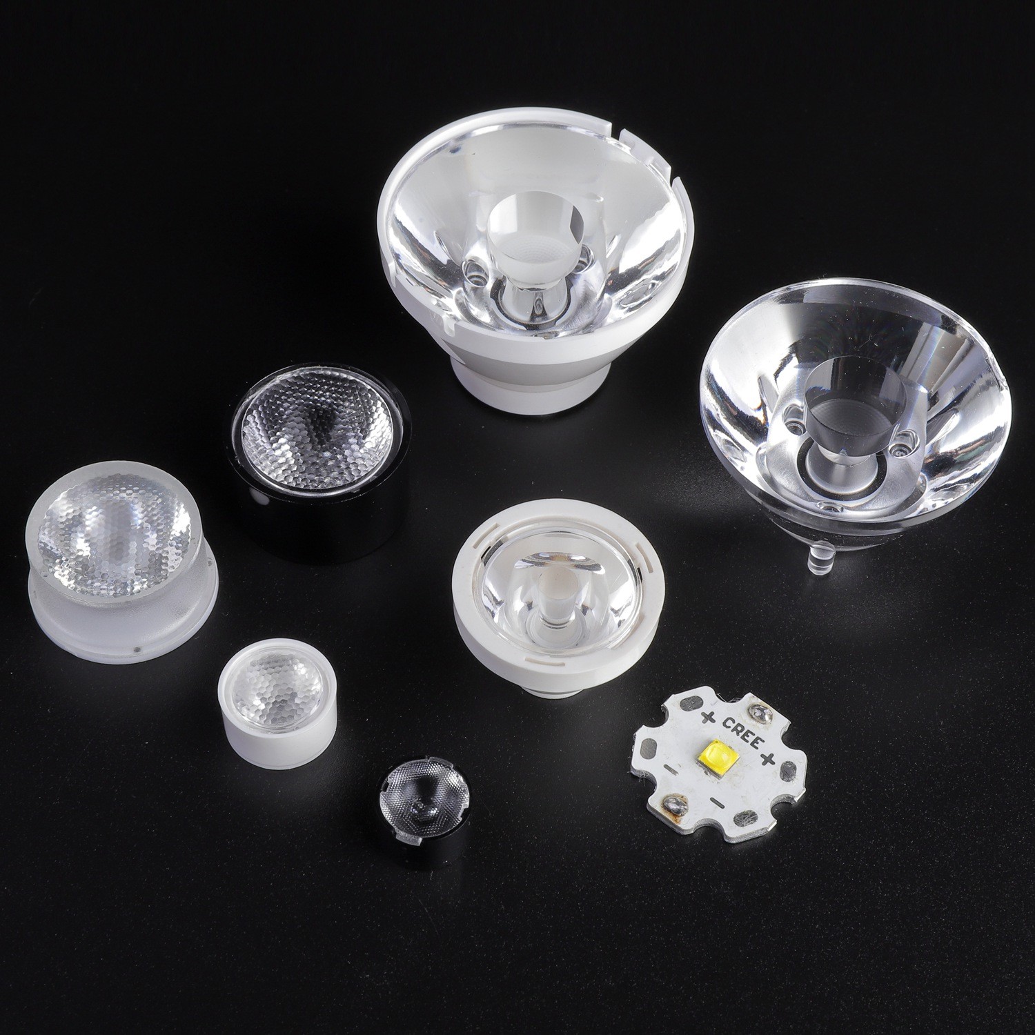 Materiał soczewek optycznych Led jest wykonany z wysokiej jakości PMMA, przepuszczalność jest powyżej 93%.